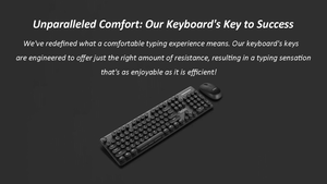 Features: 104-key keyboard, whisper-quiet, wireless keyboard and mouse, comfortable touch, beauty and style.