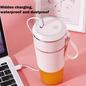 The Portable Juice Blender Cup boasts 6 sharp blades, perfect for crushing ice and blending ingredients with ease. Made with food-grade materials, this rechargeable and portable blender is designed for quick and easy cleaning, ensuring safety and convenience for all your blending needs.