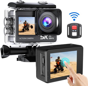 Capture every adventure in stunning clarity with this 5K Ultra HD Action Camera. Equipped with a 2.0” IPS display, a 170° wide-angle lens, and advanced features like WiFi control, electronic image stabilization, slow motion, and time-lapse, this camera is your ultimate companion for travel, sports, and underwater exploration. It supports up to 30 meters waterproof depth and includes a 2.4G remote, giving you hands-free control and creative flexibility wherever you go.