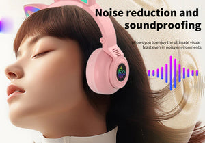 Introducing the vibrant Cat Ear Wireless Bluetooth Headphones with exceptional battery life, perfect for continuous music enjoyment anywhere, even outdoors. Featuring stable Bluetooth 5.0 connectivity, long transmission range, high audio resolution, captivating rainbow LED effects, and a foldable design for easy storage. Cute and practical, they blend charm with functionality seamlessly.
