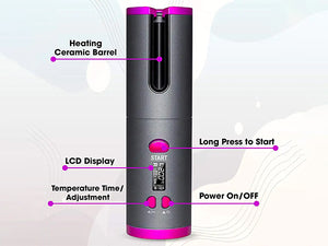 This product features a wireless and portable design, with PTC self-adjusting heating and a 19mm ceramic curling chamber. The large LCD display allows for easy control and the ability to create a range of curls, from slight and soft to bold and defined. It also offers 6 temperature and time settings, ranging from 150°C to 200°C and 8 to 18 seconds, respectively. Other features include the option to choose curl direction and a sleek grey soft-shell fabric with pink accents. Suitable for all hair types, including fragile, soft, delicate, coarse, and strong.