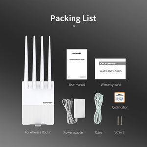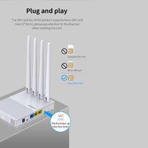 The CF-E3 4G WiFi Router delivers high-speed internet anywhere with reliable 4G LTE connectivity. Convert your cellular data into a powerful WiFi network for home office or on-the-go use. Featuring four external 5dBi high-gain antennas it ensures stable long-range signal coverage perfect for HD streaming online gaming and smooth video calls.