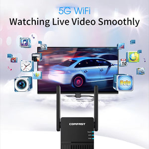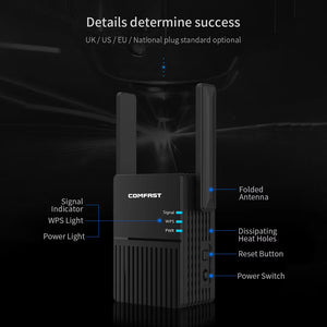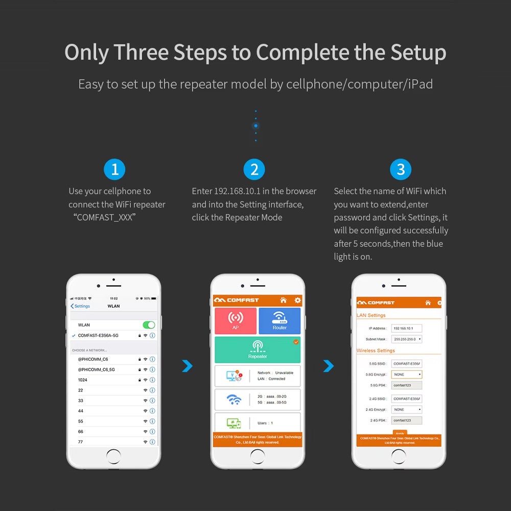 The AC1200 WiFi Range Extender boosts your wireless signal to eliminate dead zones and deliver strong, stable internet throughout your home or office. With easy setup in just three steps using any smartphone, tablet, or computer, you can quickly extend coverage to every room.