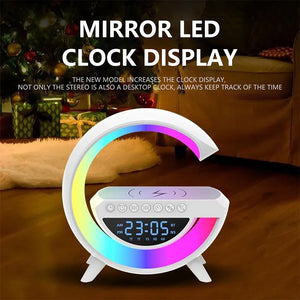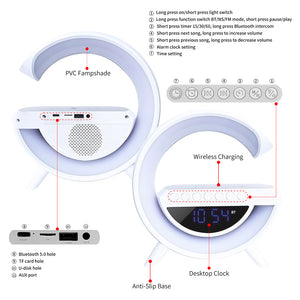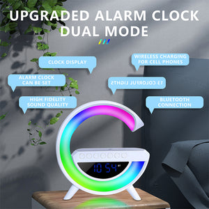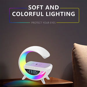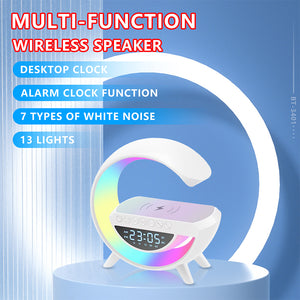 The versatile all-in-one desktop companion that combines a soft LED lamp a high-fidelity Bluetooth speaker and a practical digital clock. Designed for your bedroom or office it features 13 soothing light colors and 7 types of white noise to help you relax or focus. The built-in mirror LED clock display keeps you aware of the time at a glance while the top wireless charging pad offers convenient power for your Qi-enabled devices.