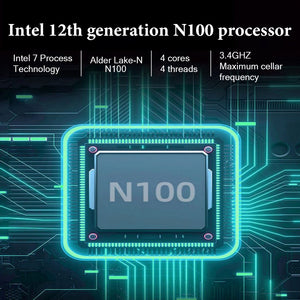 Unleash big performance in a tiny footprint with our Intel N100 Mini PC. Powered by the efficient Intel 12th Generation N100 processor (up to 3.4GHz), this compact powerhouse is built to excel in any scenario—from demanding office work and creative tasks to home entertainment and digital signage.