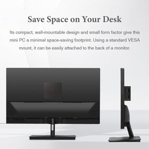 Featuring 8GB DDR5 RAM and a 256GB SSD pre-installed, it delivers smooth multitasking and fast storage right out of the box. With support for dual 4K display output, extensive connectivity options including multiple USB 3.2 ports, and flexible storage expansion for both SATA HDD/SSD and M.2 NVMe, it offers unparalleled versatility. Validated for Windows 11 and major Linux distributions, and featuring an innovative VESA mount design, this mini computer is the ultimate "performance powerhouse" for a streamlined and efficient digital life.