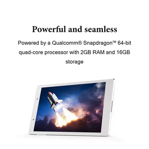 The Tab4 8 is a sleek and powerful Android tablet designed for seamless entertainment and everyday usability. Featuring a vibrant 8-inch HD display with 1280×800 resolution, wide-angle viewing, and rich Dolby Atmos® audio, it transforms into a portable media hub for movies, music, and more. Powered by a Qualcomm® Snapdragon™ 64-bit quad-core processor with 2GB RAM and 16GB storage—expandable up to 128GB via MicroSD—this tablet ensures smooth performance whether you're streaming, browsing, or multitasking. At just 8.2mm thin and weighing only 310g, the Tab4 8 is easy to handle for users of all ages, making it a perfect family-friendly device for learning, entertainment, and daily tasks.