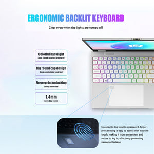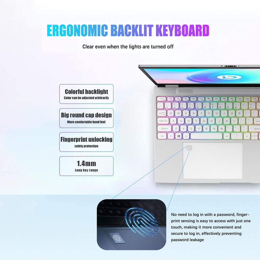 Ergonomic 7-Color Backlit Keyboard: Includes a comfortable keyboard with customizable 7-color backlighting and a large touchpad. Integrated fingerprint sensor provides secure and convenient one-touch login.