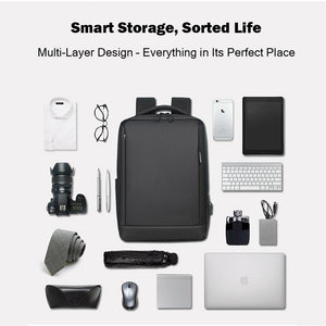 Take your commute or travels to the next level with this intelligently designed 15.6β Smart Travel Laptop Backpack. Featuring a multi-layer layout, shock-resistant laptop/iPad sleeve, built-in USB charging port, and hidden rolling wheels, this bag combines style, structure, and function. Crafted from rainproof, scratch-resistant fabric, it keeps your gear protected while providing exceptional comfort with a 3D honeycomb back cushion and S-shaped straps. Whether youβre navigating daily life or embarking on long-distance journeys, this backpack keeps your essentials organized, accessible, and secure β all while reducing fatigue on the go.