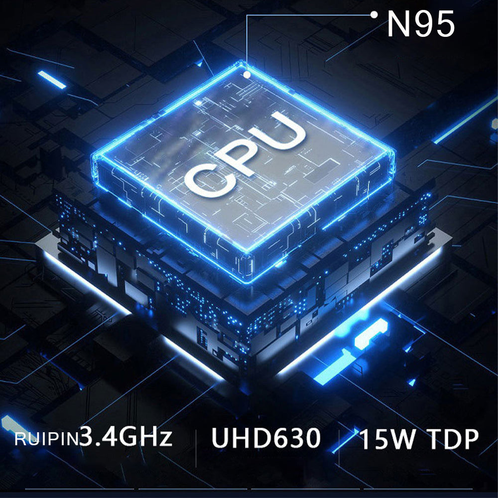 • Intel 12th Gen N95 Processor – 4-core, 4-thread CPU with 3.4GHz max turbo frequency and UHD Graphics