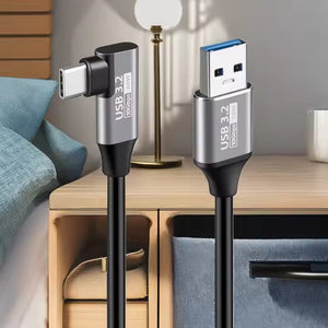 Description:Type-C cable features a nylon braided jacket and aluminum alloy housing, supporting 5A fast charging and USB 3.2 high-speed data transfer. Its right-angle design minimizes space usage, compatible with Android/iOS devices (phones, computers, gaming consoles) for car charging, power bank expansion, and office equipment connections.  packaged in 3×2×10 cm boxes (30g gross weight per unit)