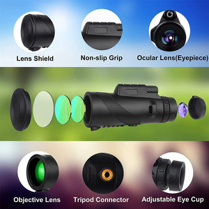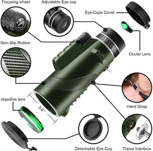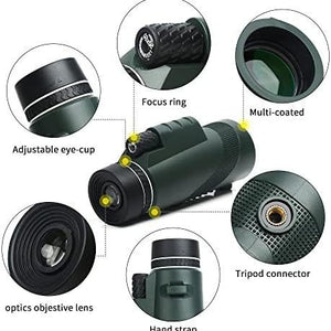 Experience the outdoors like never before with this 10x42 HD monocular telescope. Designed for clarity and convenience, it features a 10x magnification, FMC multi-coated optics, and a 42mm objective lens to deliver bright, sharp images at long distances.