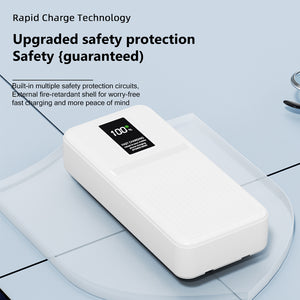 Despite its large capacity, the power bank remains compact and lightweight, making it the perfect travel companion — whether you're commuting, exploring, or simply on-the-go. Never wait, always ready.