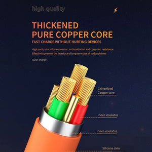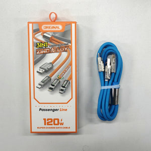 Charge your devices quickly and safely with our 3-in-1 data cable. Made with silicone skin-friendly material and a thickened pure copper core, it supports multiple ports and devices while providing 120W fast recharge without harming your device. With built-in intelligent 6 chips and an LED indicator, this zinc alloy connector cable is the perfect companion for all your charging needs.