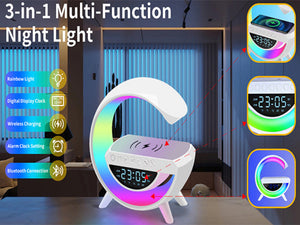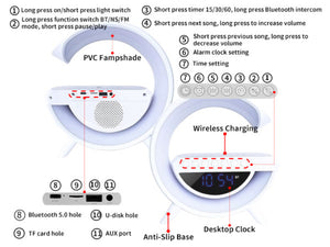 This versatile, multi-functional device combines an impressive array of features, offering both a visual and auditory experience that elevates your space. The product boasts 13 different colored lights, perfect for setting the mood in any room, alongside a digital clock for timekeeping. A standout feature is the 360-degree surround speaker, delivering immersive sound that fills the room. Additionally, it supports wireless charging at 15W, ensuring your devices are powered up without the hassle of wires. The device also comes with Bluetooth 5.3 connectivity, allowing seamless pairing with other devices within a range of 10-15 meters.