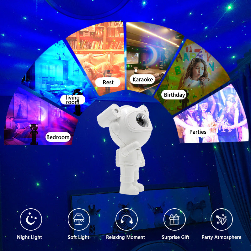 Explore endless possibilities with the Astronaut Space Star Projector, where you can freely adjust the projection angle to create a mesmerizing experience. Whether projecting onto walls, corners, or ceilings, you can transform any space into a galactic wonderland. It's the perfect addition to your home or office, offering a unique and captivating ambiance that everyone will love.