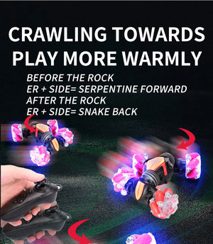 Control the action with a 2.4GHz remote for smooth, responsive handling. Colorful gradient lights on both sides light up your nighttime adventures, while 360° rotation and cool stunt effects add non-stop fun. Small, portable, and built for excitement—this RC car is the perfect gift for kids and hobbyists who love off-road challenges.